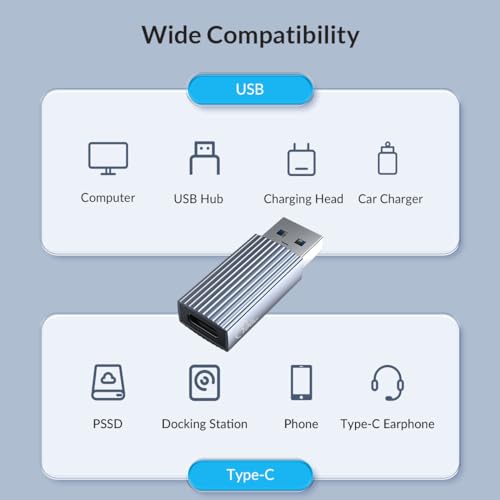 【Universal Compatibility】 ORICO converter converts a USB Type-A 3.1 Gen 2 male port into a USB-C female port, perfect for laptops, personal computers, USB chargers, power bank, USB-C hub, or any other USB Type-C peripherals
