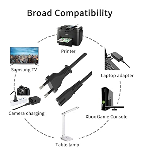 FEDUS Black 5.9 Feet 2-pin Universal Replacement AC Power Cord Cable Wire for LED TV, Printer, Play Station, Laptop PC Notebook Computer, Tape Recorder, Camera