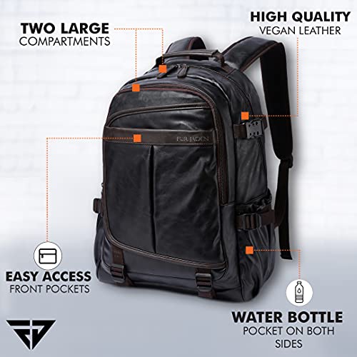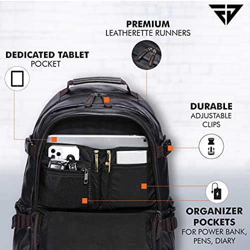 The Perfect Laptop Backpack: This faux leather backpack is ideal for the storage of your gadgets. It has compartments dedicated for safekeeping of your laptop and other accessories such as tablets, keys, chargers, etc. Durable Build: This laptop bag is durable and sturdy in nature. It is made using premium faux leather which has a long life. The make of the bag is durable and can take weight upto 7Kgs easily. Water Resistant: This backpack is made from faux leather which is also water resistant in nature. This ensures that your belongings are safe in a light shower. However please note that no bag is ever waterproof as water can always seep in through the zips thus we recommend using a rain cover for 100% protection. Neat Storage: This laptop bag is equipped with multiple internal and external pockets that allow you to segregate your belongings and store them in a neat and organised manner. Organizer Pockets: This bag also has an accessible front zipped pocket. This is ideal for storing small necessities which need to be accessed regularly. It allows convenient accessibility. Comfortable Straps: Apart from having a dignified appearance and an extensive utility, this bag also offers comfort. It has padded shoulder straps that efficiently reduce the strain on your shoulders and back.