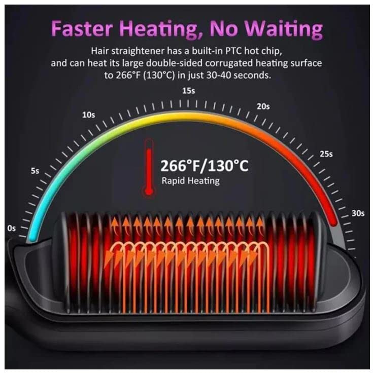 ➣【5 Temp Settings】Temperature light on the Blaziken hair brush straightener showing the temperature from the bottom to top is 266°F to 392°F (from 130°C to 200°C), which suitable for thin, fine, frizzy or long thick curly hair(Hair that is too thick, fluffy and curled in a spiral is not suitable for use), even if a long beard. It is perfect for a whole family, for adults or children, women and men.