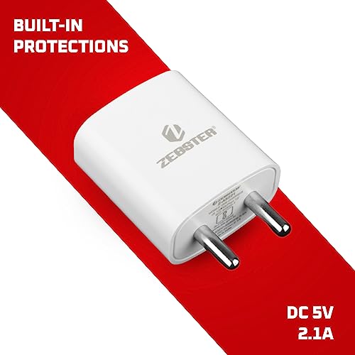 Zebster Z-A5211 Mobile USB Adaptor with Micro USB Cable with Output of 2.1A (White)