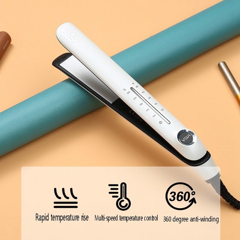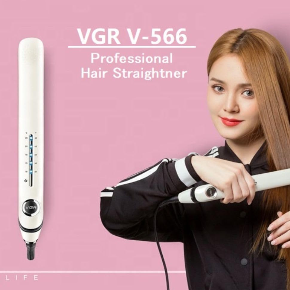 VGR V-566 Professional Hair Straightener with Ceramic coated plate & Uniform heat technology Straightens All Hair Types 150°C to 230°C 5 Adjustable Temp setting LED Display 360° swivel cord – White