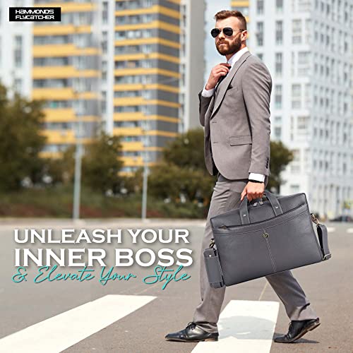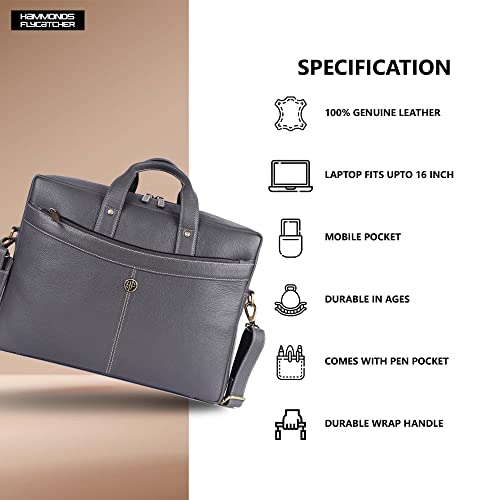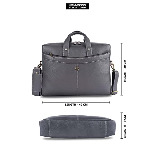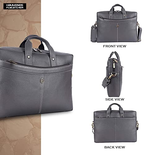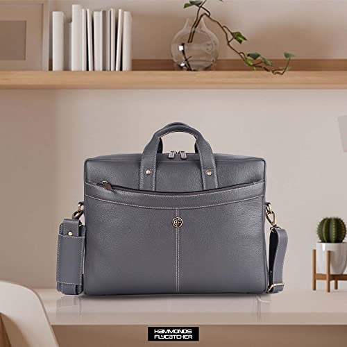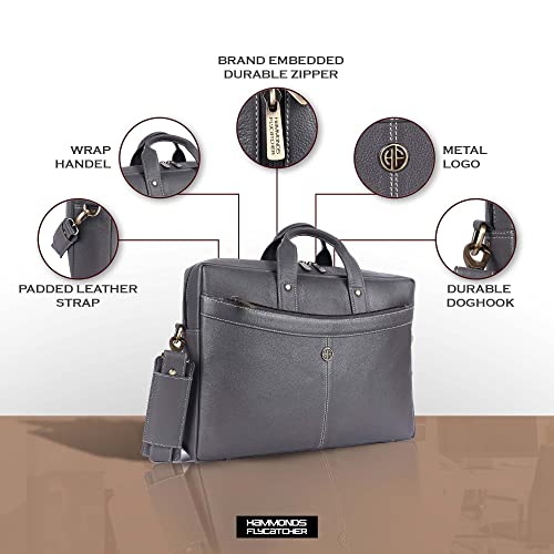 HAMMONDS FLYCATCHER Laptop Bag for Men – Genuine Leather Messenger Bag for Office -Fits up to 16 Inch Laptop -Graphite Grey Shoulder Bag with Multiple Compartments -Executive Leather Bag – Work/Travel