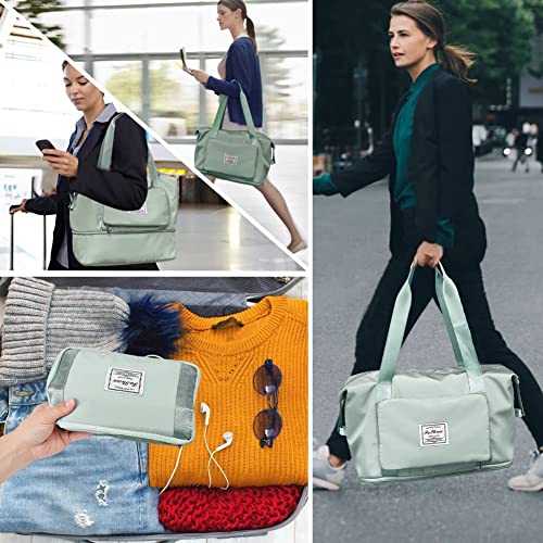 EXPANDABLE TRAVEL BAG:- Friendly shoulder travel duffle bag for women, 2 levels of expansion. After unfolding, the folding travel bag will rise from 8.6 inches to 12.6 or 16.5 inches. The trolley sleeve fixes the bag to the suitcase to reduce the burden of the journey. You can put your ticket, passport, and mobile phone in your luggage case.