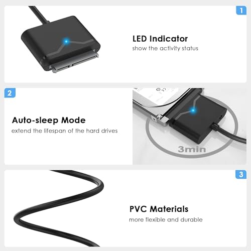 Energy Saving: The blue LED indicator lets you know the working status easily. The adapter with the function of auto-sleep mode (3 minutes with no operation), which can greatly reduce the invalid energy consumption, protect the hard drive data for you. The S.M.A.R.T function allows you to monitor the status of your HDD or SSD on computer easily.