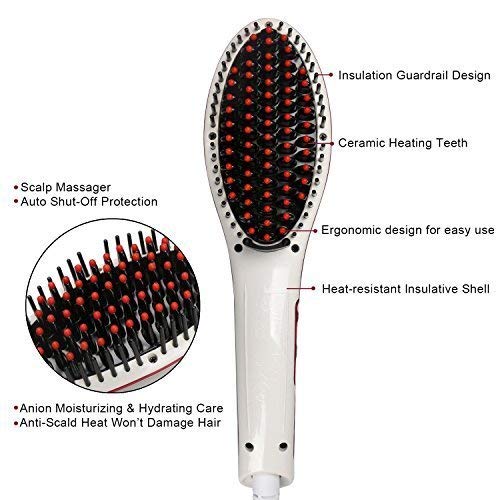 Fast hair straightener brush for silky shiny straightened hair. Instantly give you perfect beautiful hair style. Brushing action reduces risk of dry damaged hair. Instructions: Please keep hair dry and neatly groomed before using. Insert the plug into proper the socket. Turn it on and adjust the temperature. In the process of using, one hand pulls hair end and comb with straightener. It will be turned off by an hour automatically. Package Include: 1 x Hair Straightener.