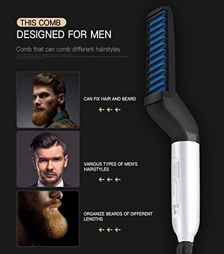 SAFE TO USE: Men can now use this electric beard comb to style their beards and hairs. Whether you want to curl, straighten, volumize hair, flatten side hair & straighten curly hair, or just simply brush the beard, it can all be done with this single gadget.