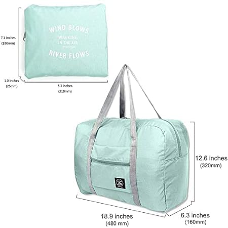 Specification : Unfold size: 44 x 17 x 35cm /Folded: 29 x 19.5cm Material: Polyester + PVC Color: Multi-color Closure;: Zipper Package Included :1 X Women’s Travel Bags Luggage Organizer Carry On Bag for Airlines, Travelling On board with no additional charges, our duffle bag is designed as a carry on bag, you can easily tuck in under the seat in front of you. When not being used, fold it into a small compact, no weight, 90% less than your empty luggage. 32 liters, to carry your gifts and souvenirs, or transfer your things from the suitcase. How To Fold it Back Into The Pouch: Lay it on a flat surface, pouch side down and zipped. Tuck in all four sides until you have an approximate rectangle. Fold top, bottom, two sides in until you have it as the same size as the pouch. Pull the pouch flaps over the folded bag and zip. Perfect Travel Bag Folding up into a small pouch does not take much space in your luggage, unfolded as an extra bag for souvenir or clothes when traveling leaves room for valuables in your suitcase, or used as a carry-on with decent size to fit under an airline seat or in the overhead bin in case you are overweight for a checked bag.